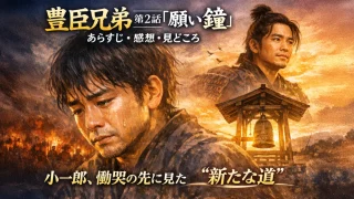 NHK大河ドラマ『豊臣兄弟!』第2話「願いの鐘」では、小一郎(仲野太賀)が人生の転機を迎える重要な回が描かれます。村を襲う悲劇、愛する人との別れ、そして母・なか(坂井真紀)の言葉――そのすべてが彼の運命を静かに動かしていきます。この記事では...